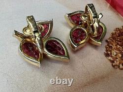 RARE Alfred Philippe TRIFARI INVISIBLE Art Glass Ruby Leaf Earrings Book Piece