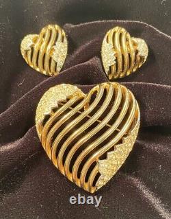 Brooch can also be worn as a necklace-earrings are clip on. The Brooch is signed "TRIFARI - PAT PEND" with the Crown symbol. Matching Earrings are each approximately. 75 and have hinge closures set at a angle.