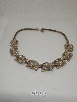 VTG Alfred Philippe Trifari Pat Pend Necklace Diamante Pearl & Gold Plate c1940